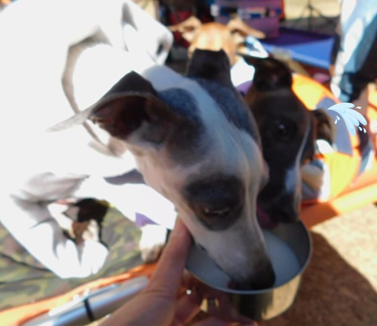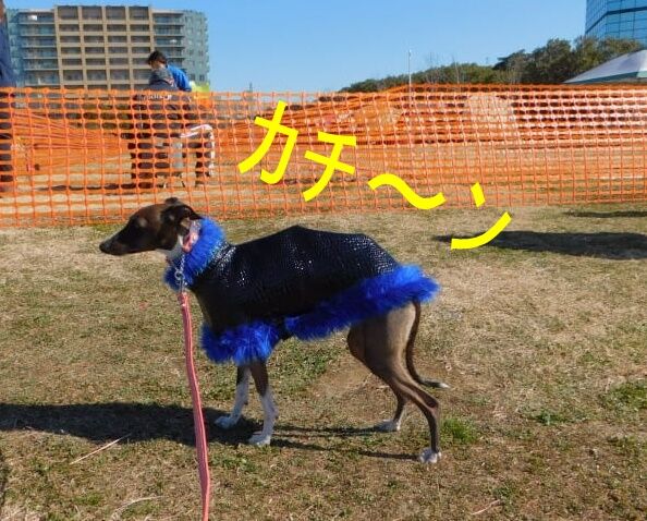 メンタル弱めのコトちゃんがちゃんと走れるのか不安がよぎり、先輩達の走りを見せるため、抱っこしてみました・・・。