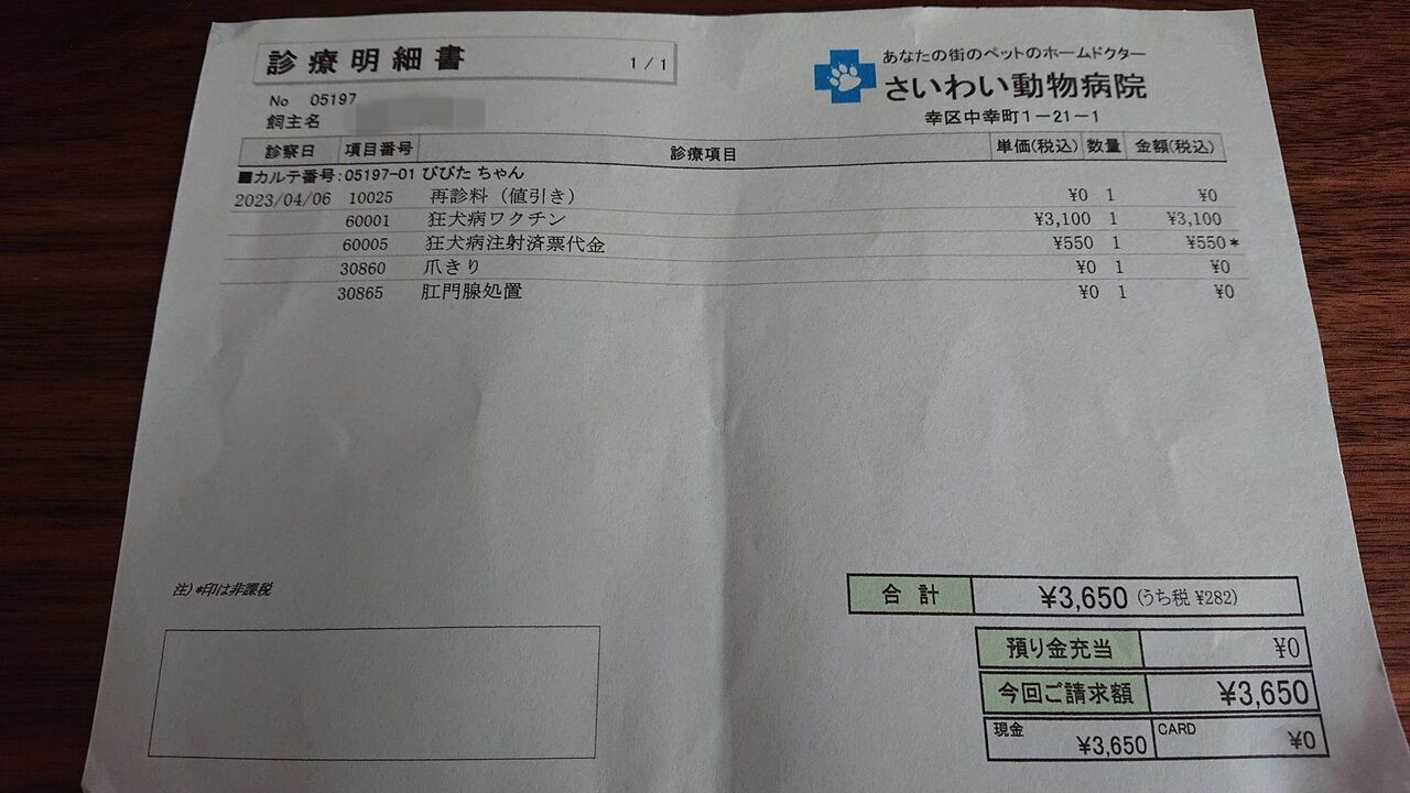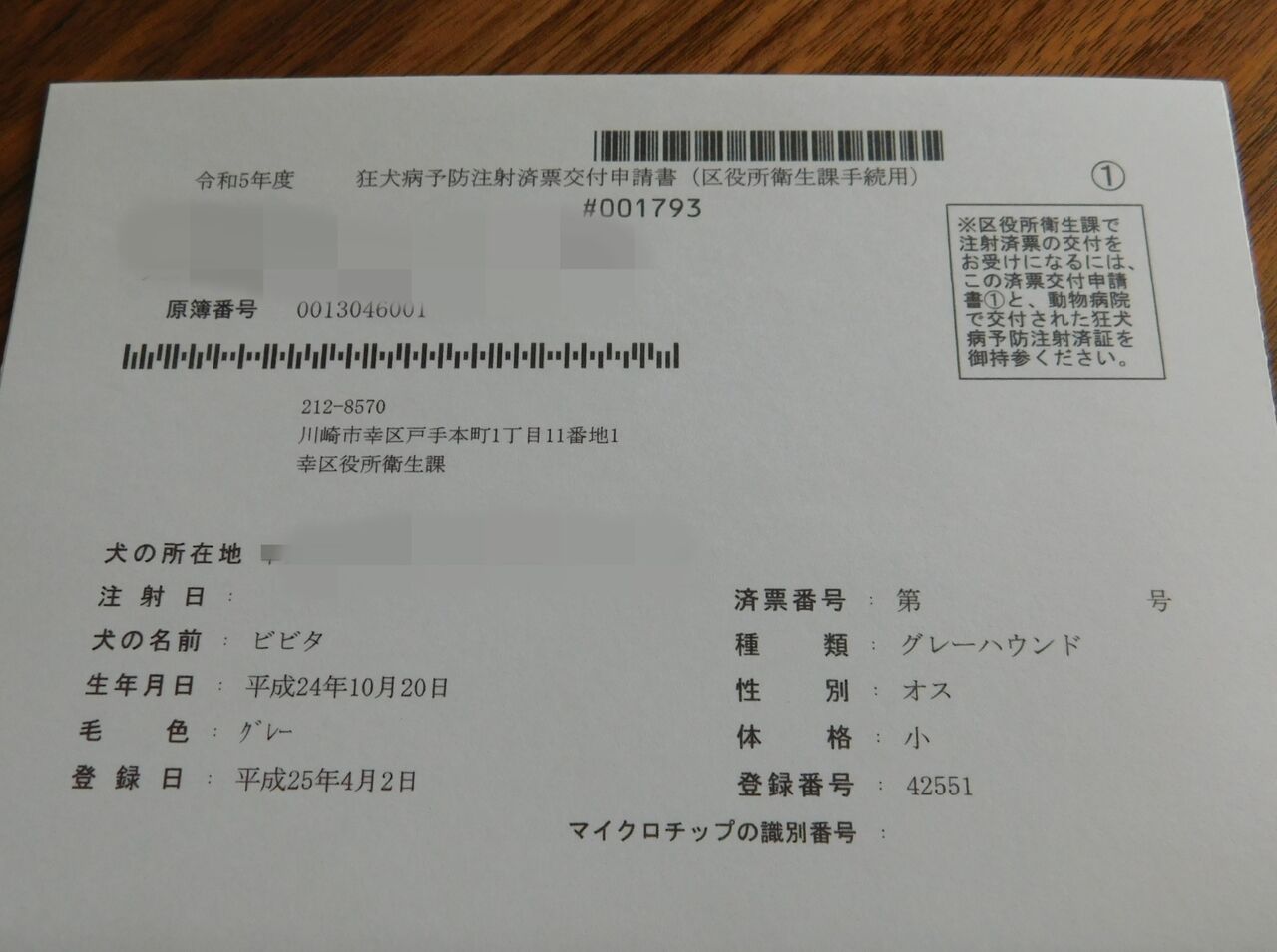 お手紙がきたので狂犬病予防ワクチンを打たないとね・・・