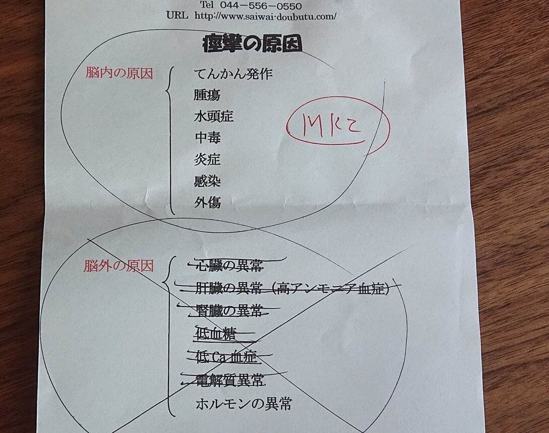 詳しく調べるにはMRIをとらないといけないのですが、初めての発作なので、様子を見てることにしました。