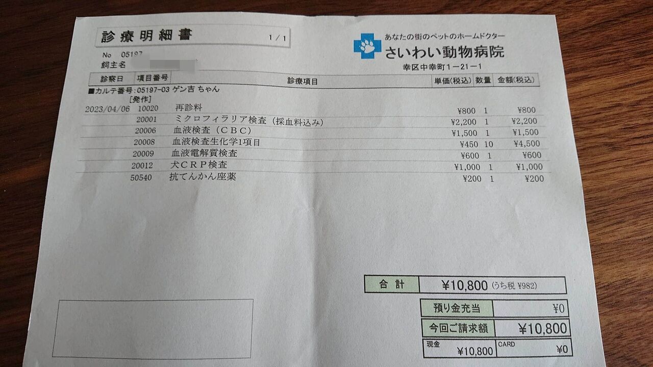 ゲンちゃんのお支払いはこんな感じです。