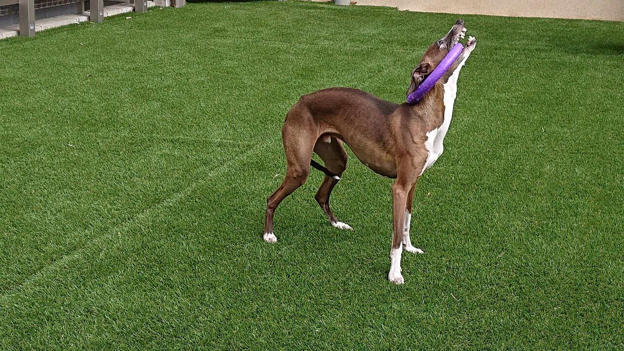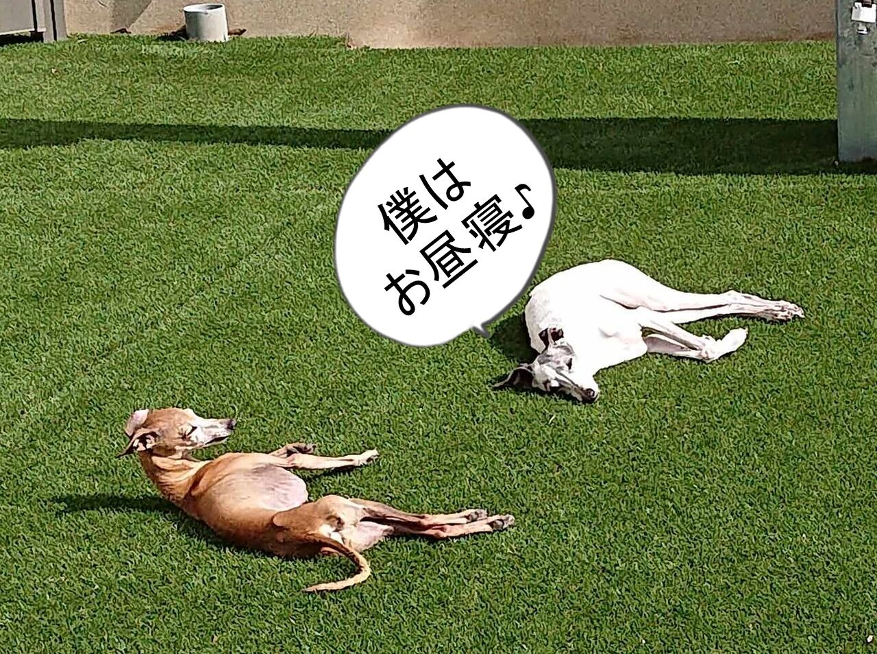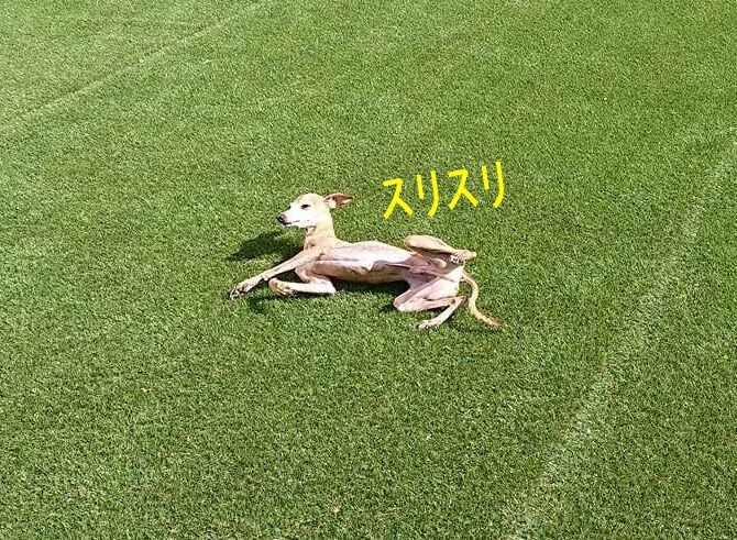 人工芝でスリスリ・・・