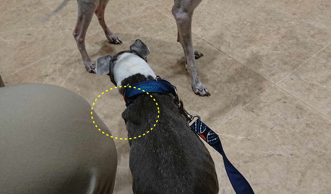 寒い日が続いていたので洋服を着せていることが多かったのと、筋肉のふくらみと重なって発見が遅れてしまいそこそこの大きさがあります。