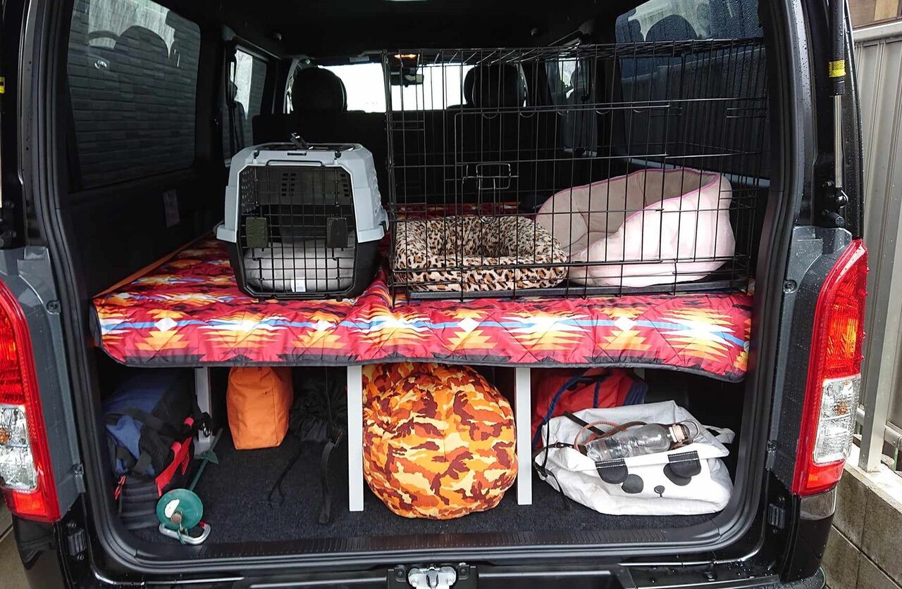 取り急ぎワンコ達のゲージといつも使っている荷物を入れてみました。