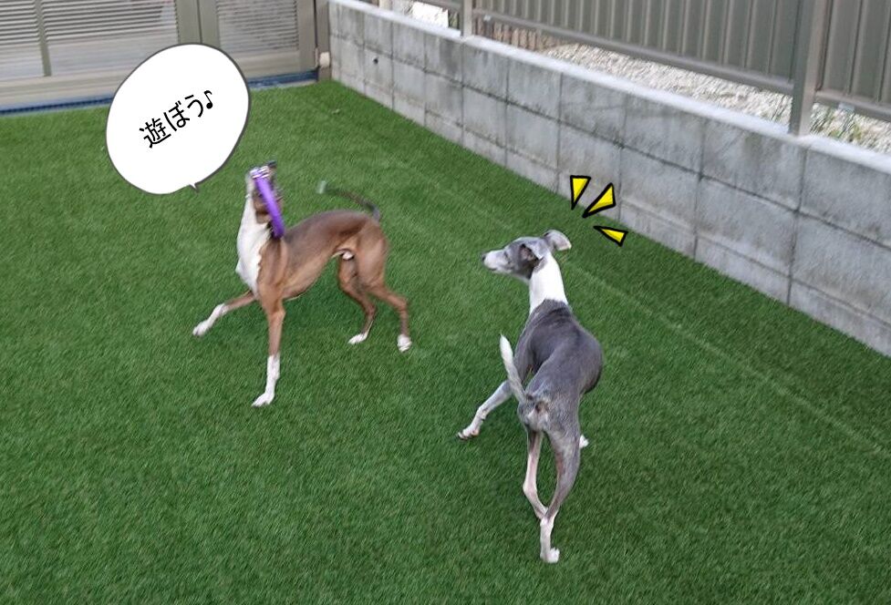 一緒に遊ぼうとビーちゃんを誘うコト丸ちゃん・・・