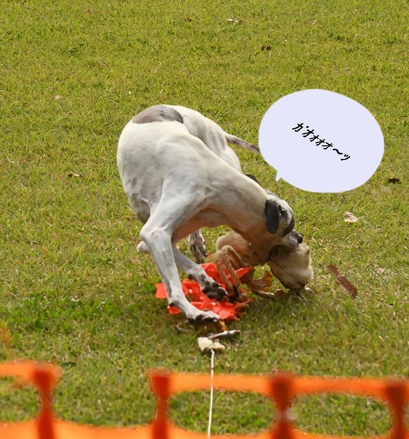スタート付近でほかのコの走りを見ていたら・・・急にキャンキャン騒ぎ出したのでその場から離れようとすると・・・