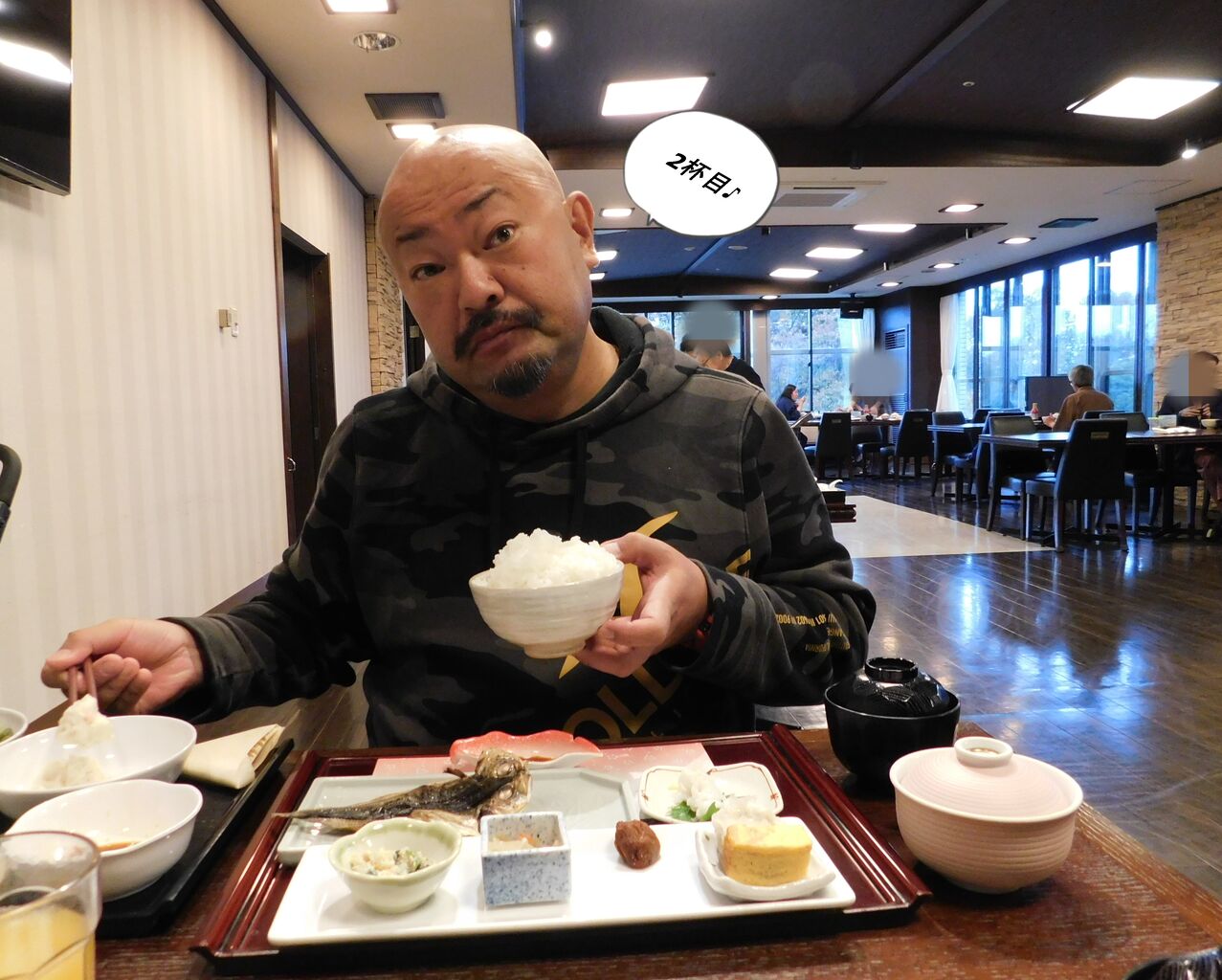 この後もう1杯お替りして、朝ごはん終了です。