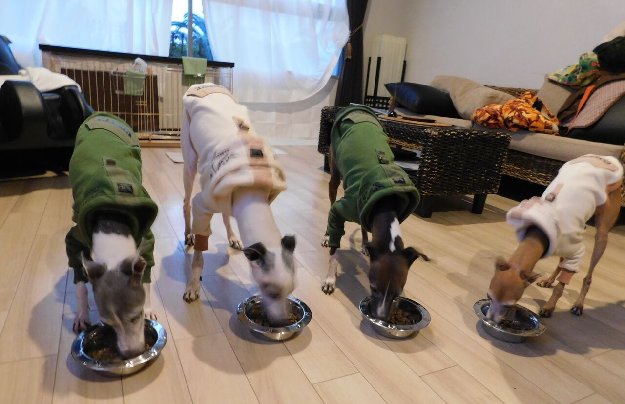 夕食の時の写真はビーちゃんが横を向いてしまっていたけど・・・今回は皆ばっちりカメラ目線です。