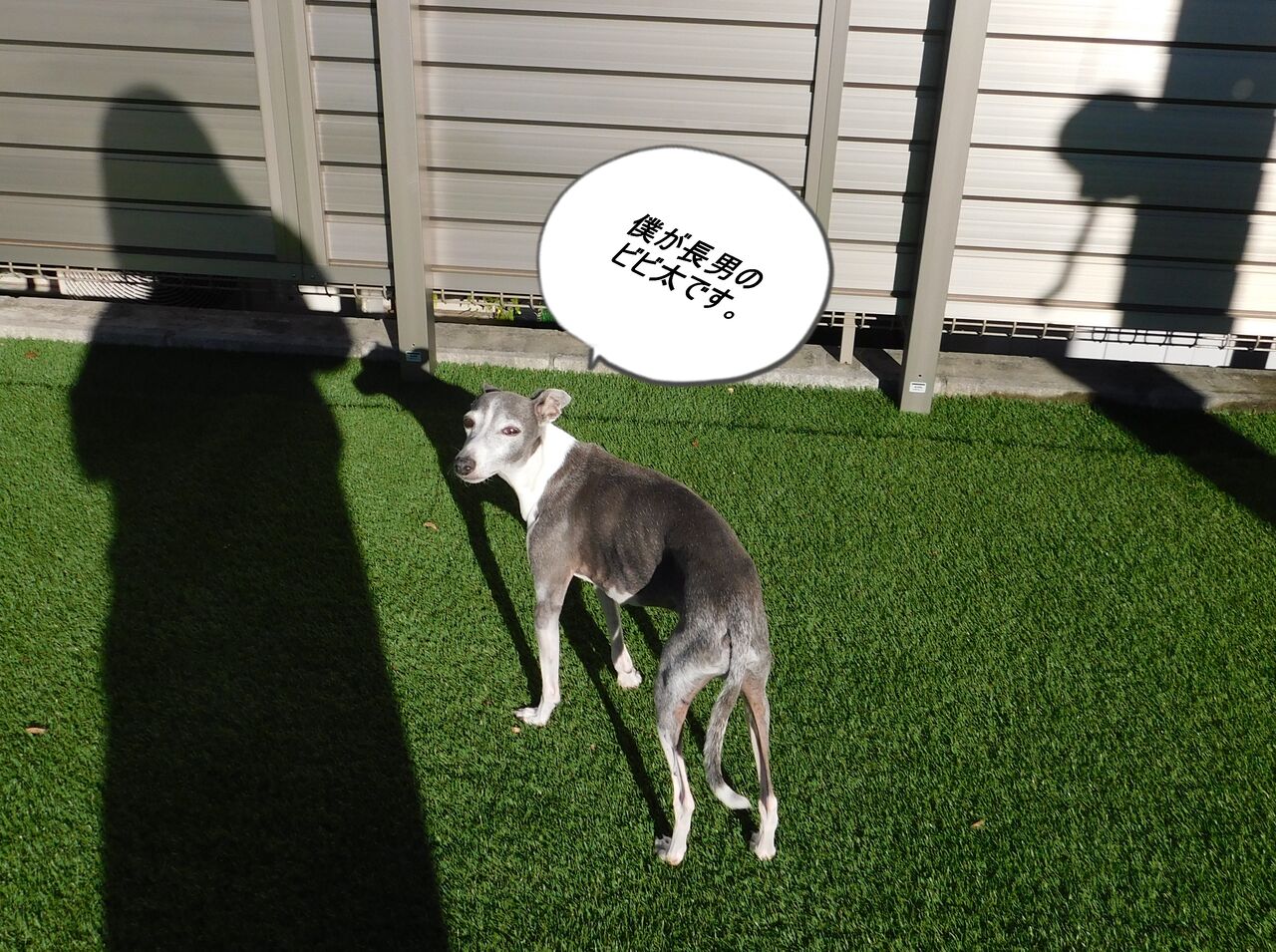空港でチッコをしていないのでとりあえずお庭に放牧・・・。