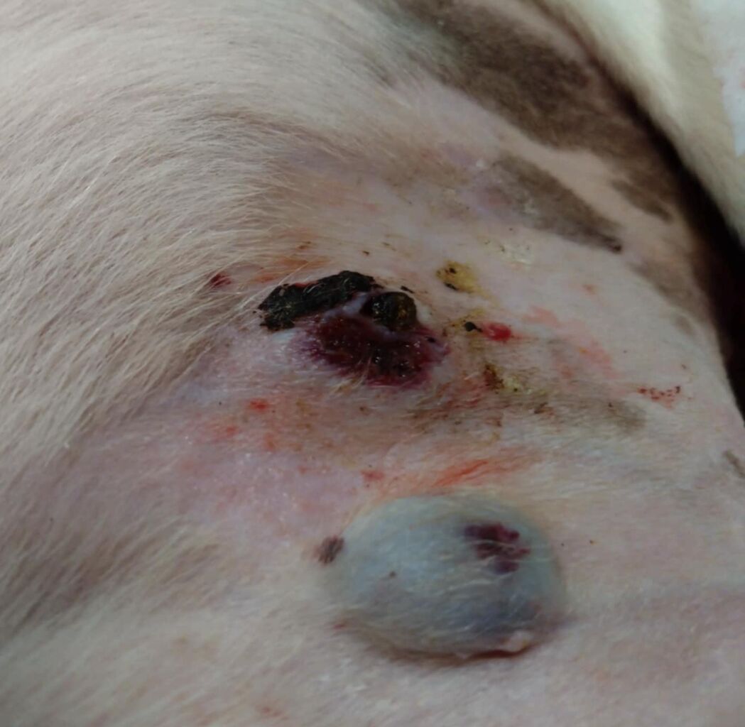 2つあり、1か所は破けて流血しています。