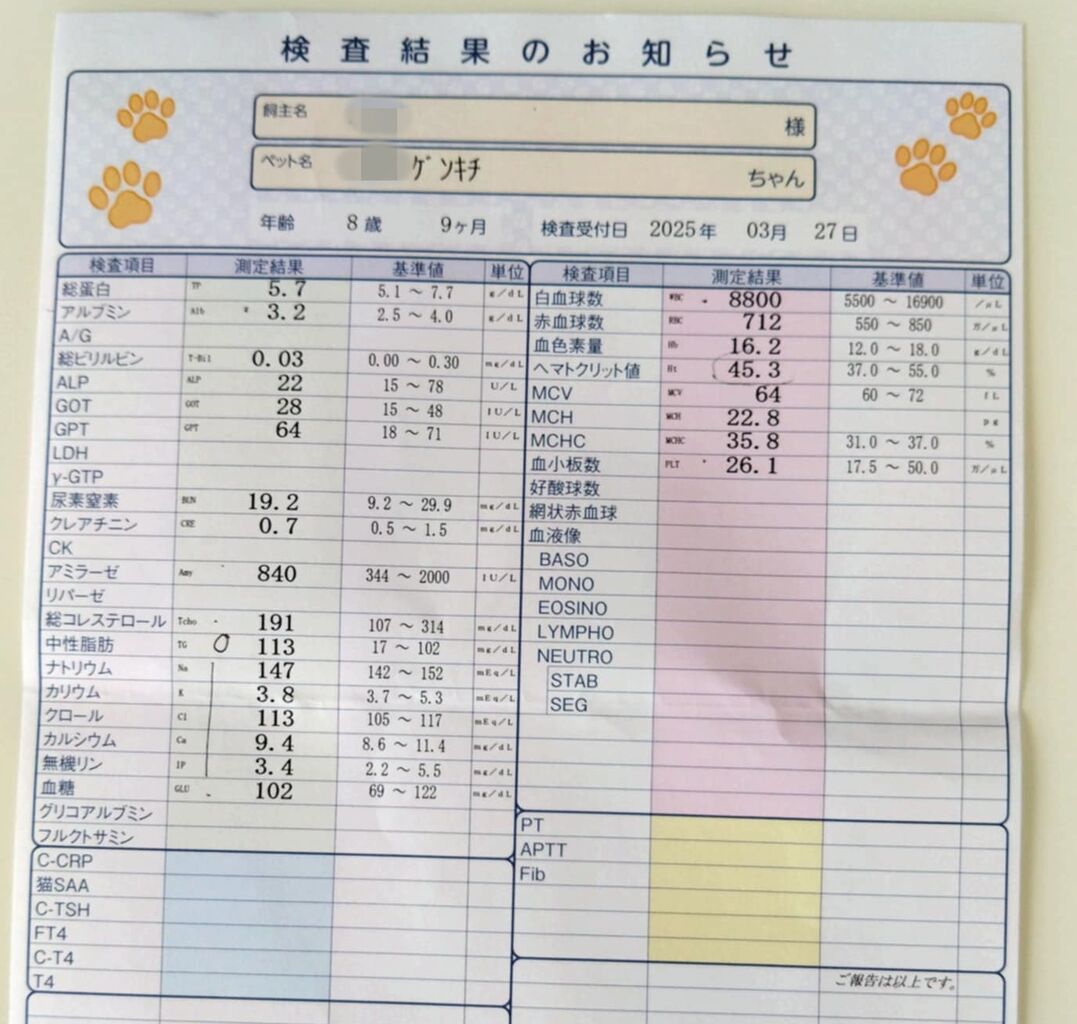 肝臓の数値も貧血も全く問題なしです。