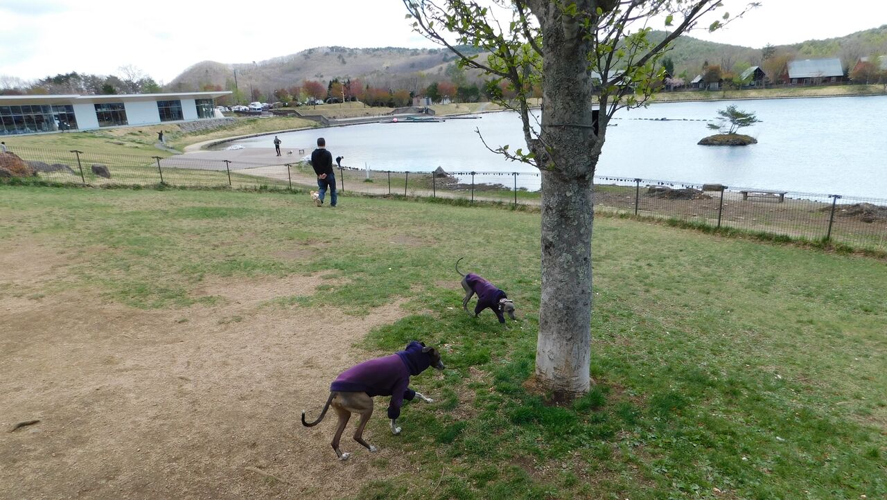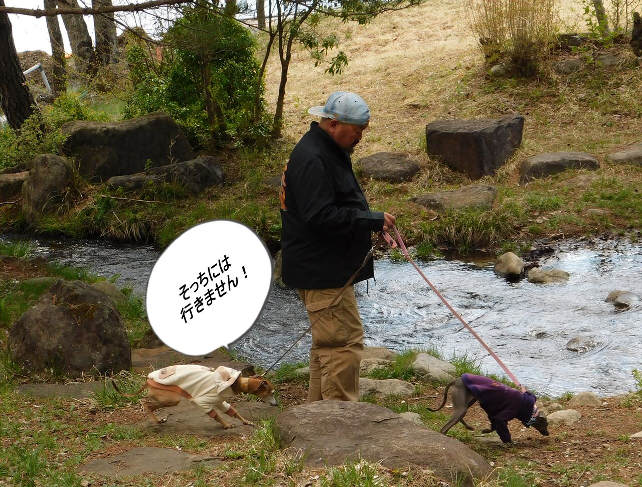 湖畔のドックランを出て頭ちゃんが小川の方へ進んでいきます。