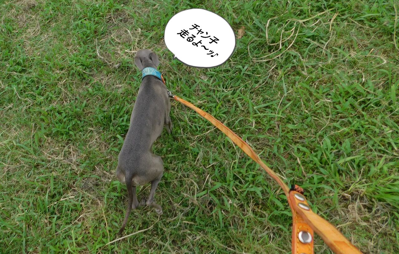 オトコトは走る前にお水かけても全く気にせず走るんだけど・・・チャン子は気になっちゃったのかな・・・。