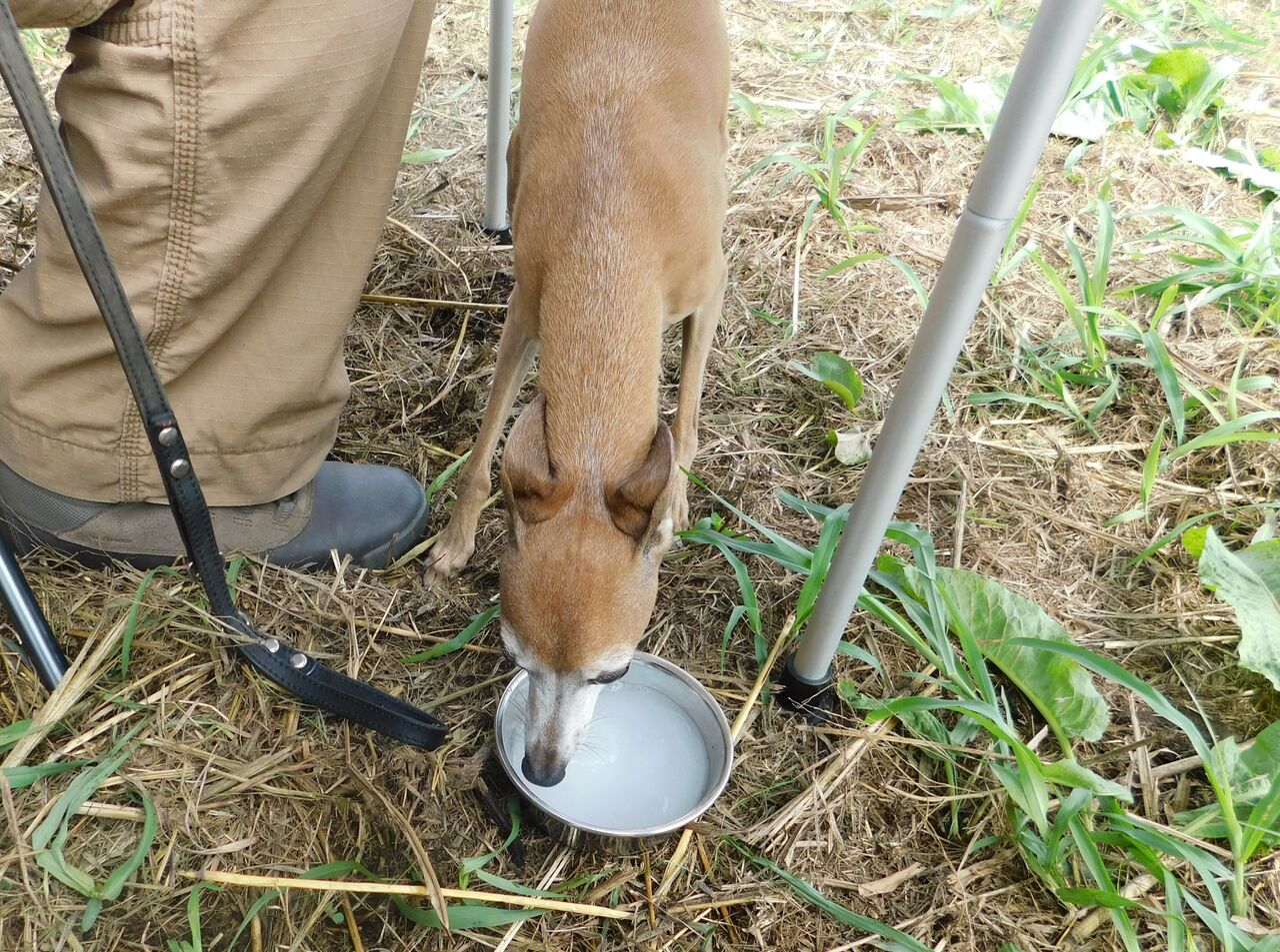 コトチャンが休憩している間、オトゲンを車から降ろしてヤギミルクタイムです・・・