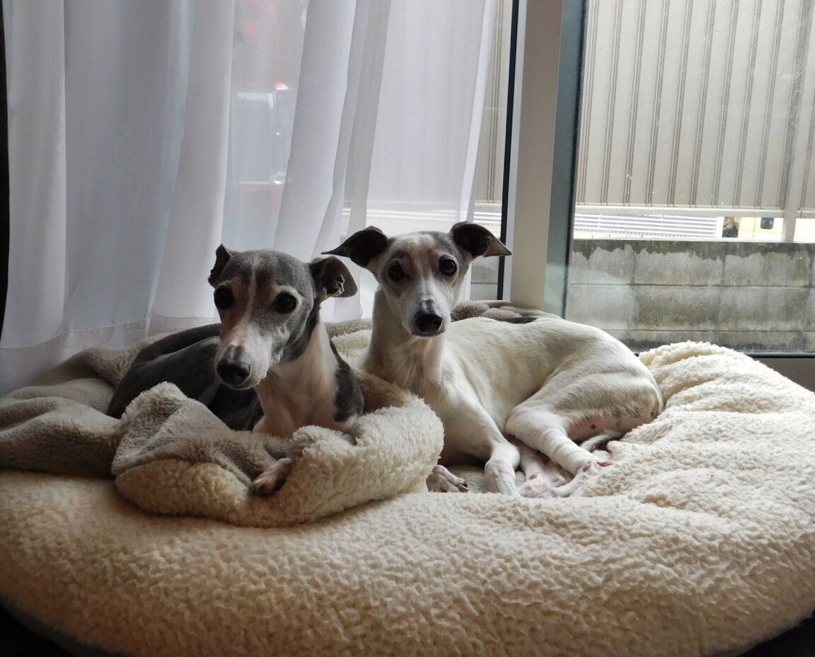 ビーちゃんはワンコとくっつくのが苦手だから・・・他のコと身体が触れないようにしてそのまま寝てたから朝起きるとおかあしゃんは身体が痛かったんだよ・・・笑