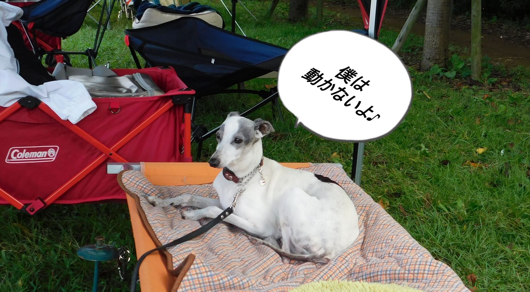 レースが始まり、オトちゃんの順番が近くなったのでチャン子をタープに戻しスタート地点に向かいます。