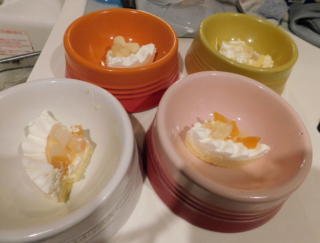 被り物をとってもらえずそのまま食べているので・・・コトちゃん・・・食べにくそうだね・・・